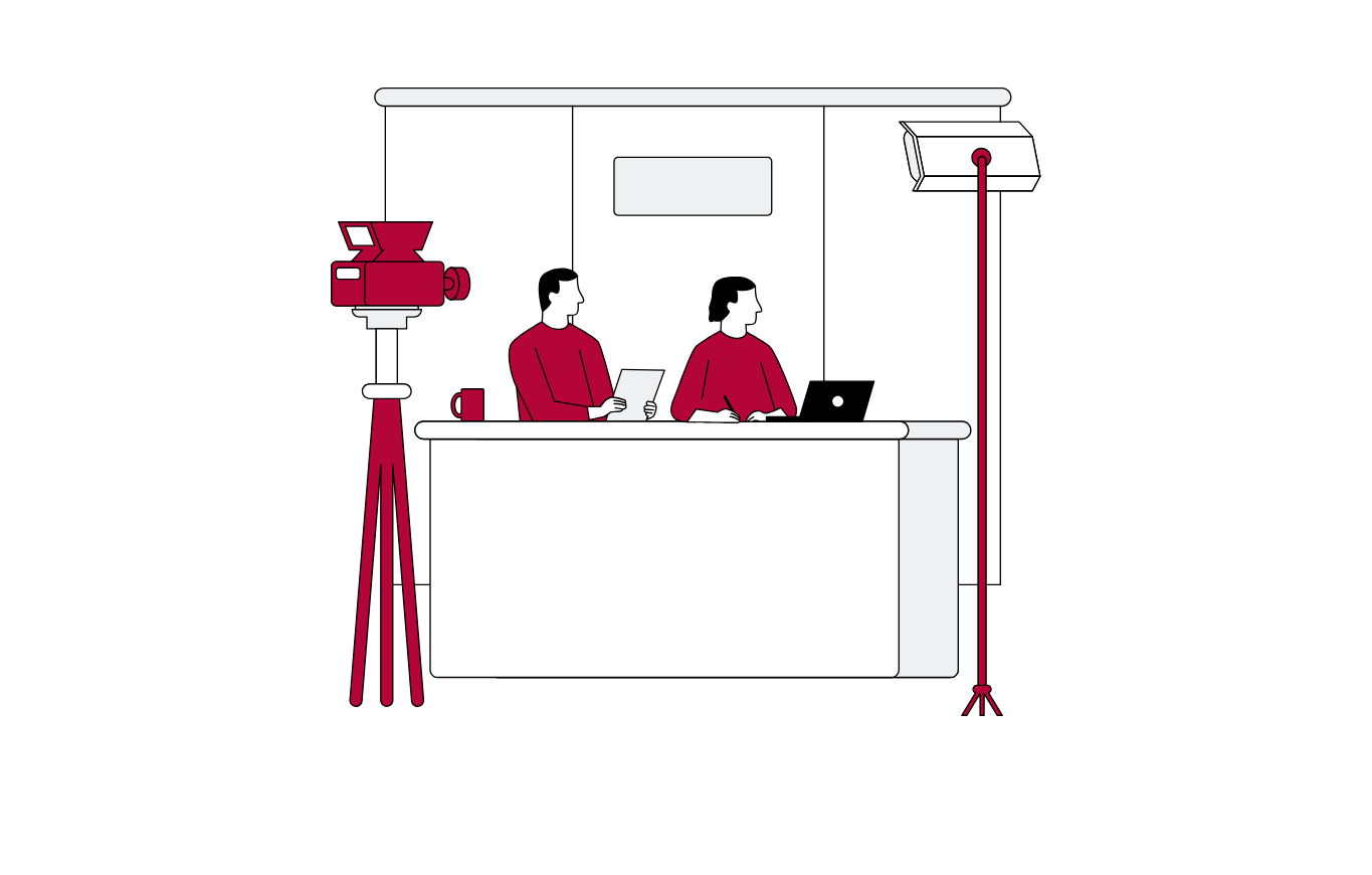 Media and Communications students use facilities* such as our TV and Radio Studios for skills-based learning including newscasting and podcast recording.